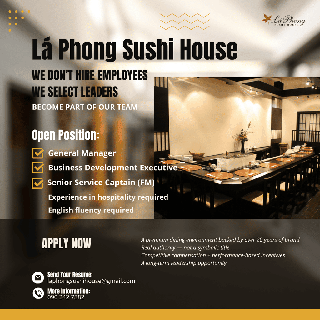 Lá Phong Sushi House - thương hiệu ẩm thực Nhật cao cấp hơn 20 năm - đang tìm kiếm: